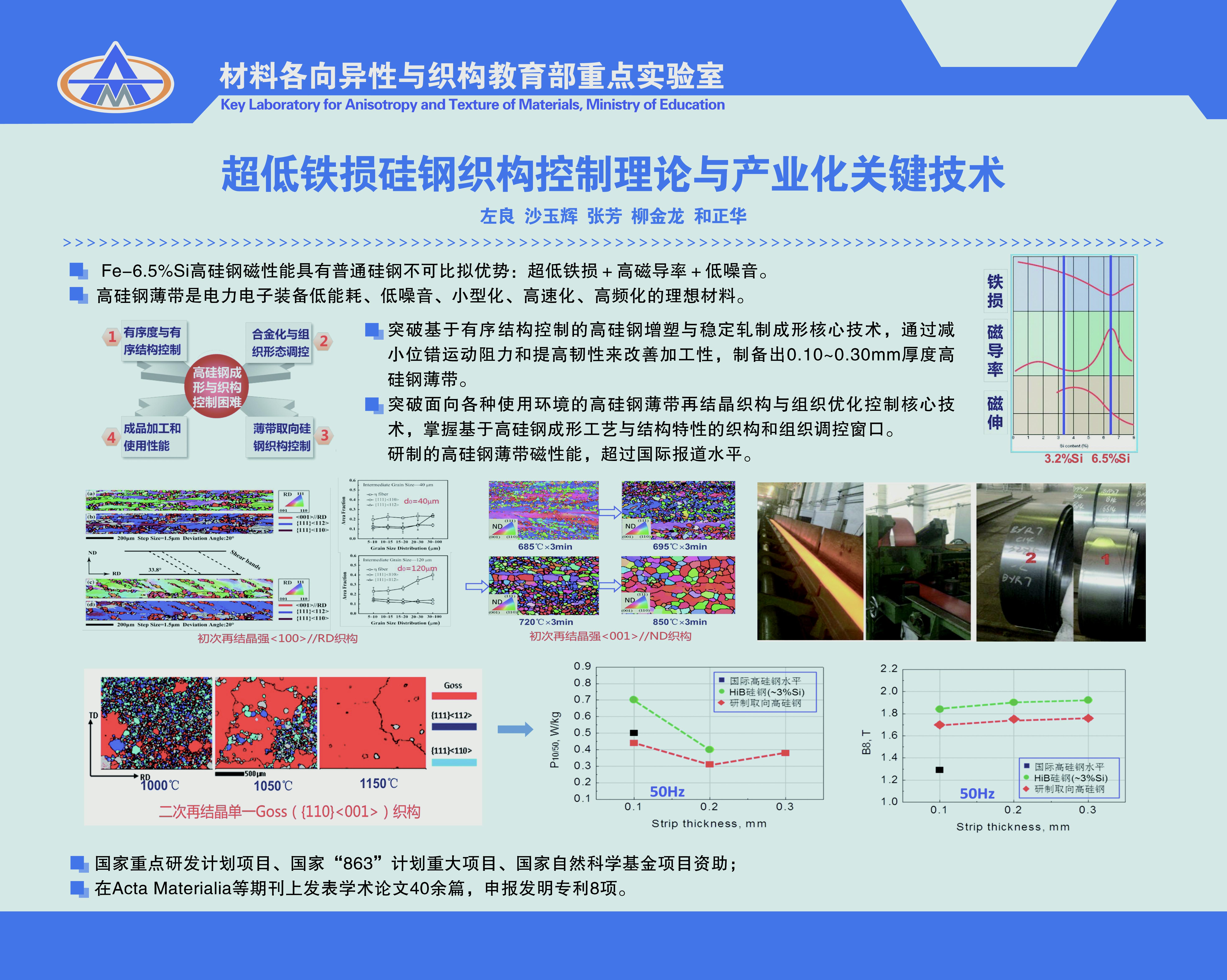 标志性研究成果2——超低铁损硅钢织构控制理论与产业化关键技术